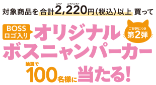 対象商品を合計2,200円(税込)以上ご購入のレシートでご応募ください。(レシート複数枚の合算可)